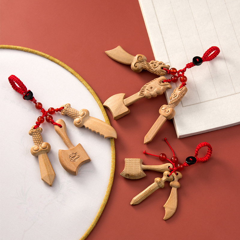 キーホルダーのペンダント桃木福禄平安創意古風自動車チェーンキーリング男女カバンの装飾