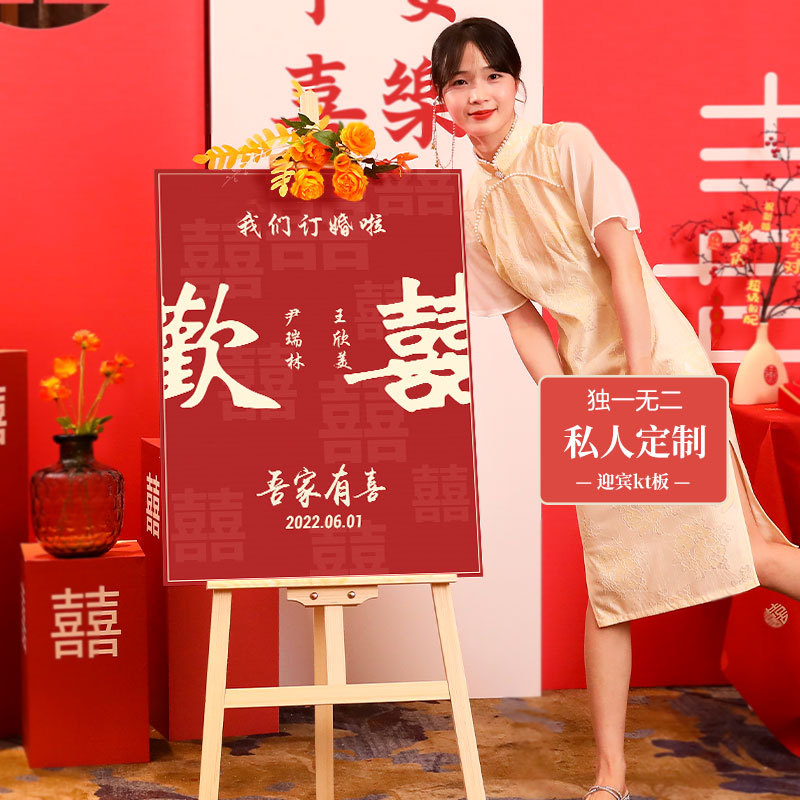 結婚披露宴の迎賓ブランドを予約しました。農村の結婚式の案内ブランドの展示棚に飾られています。