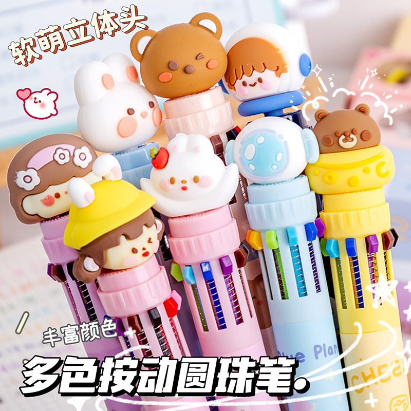 かわいい十色押しボールペン小学生はアニメの油絵ペンの多色でペンの高い顔の値を使ってノートを作ります。