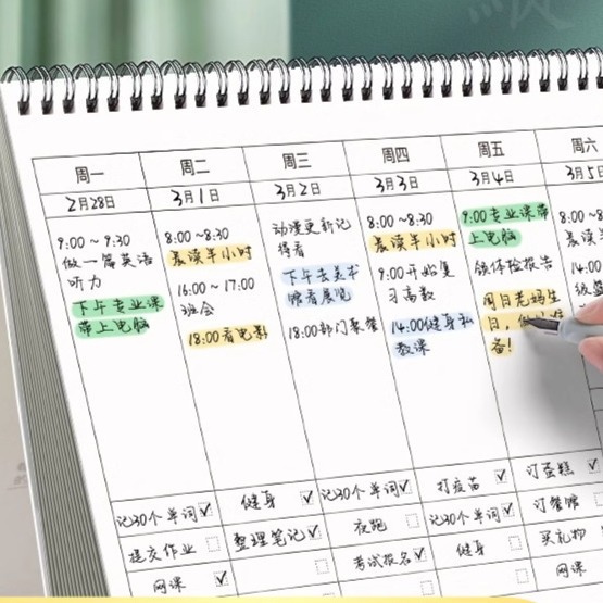 毎日計画今週の予定表日記スケジュール線本2024年学習試験自律カードノート