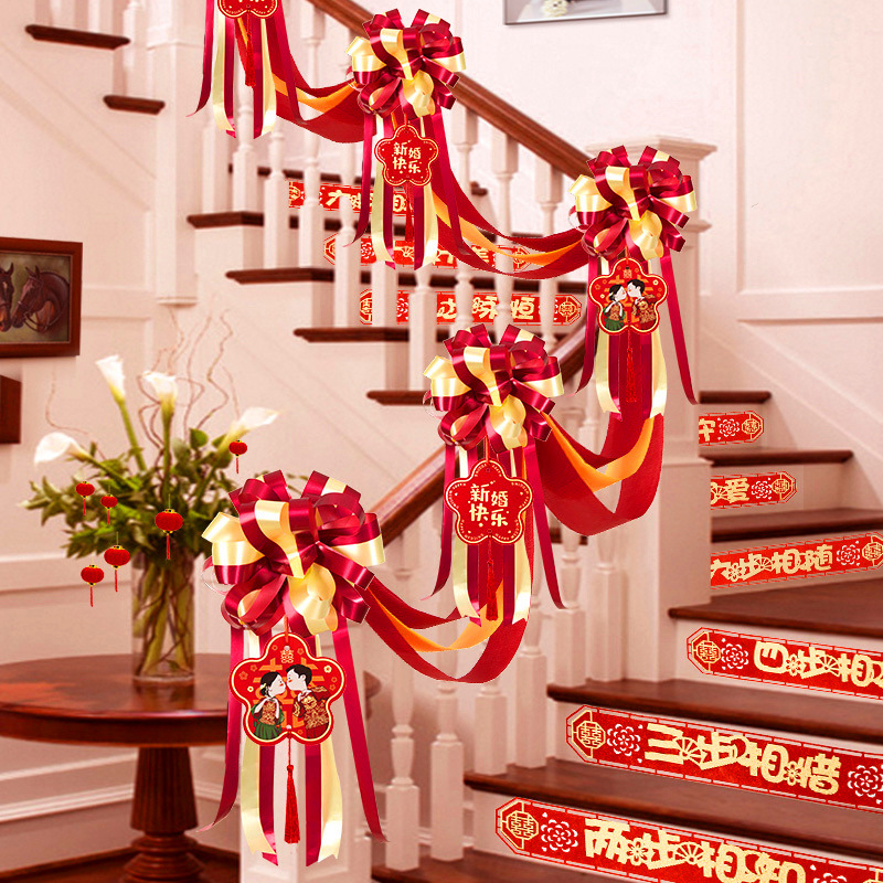結婚階段手すり装飾結婚部屋配置セット女性の結婚式喜字男性の結婚祝い用品大全花