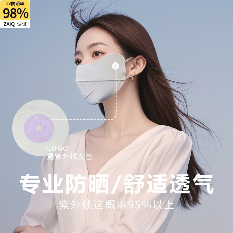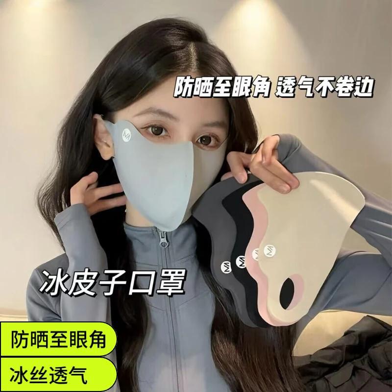アイスシルク日焼け止めマスク、快適で通気性のある3D立体的な夏用紫外線防止女性用目の保護マスク、通気性のある日焼け止めマスク