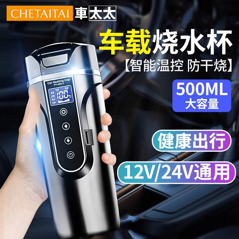 智能屏显车载烧水杯车用电热杯12V/24V通用车家两用烧水礼品代发