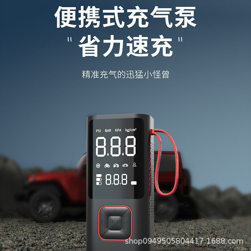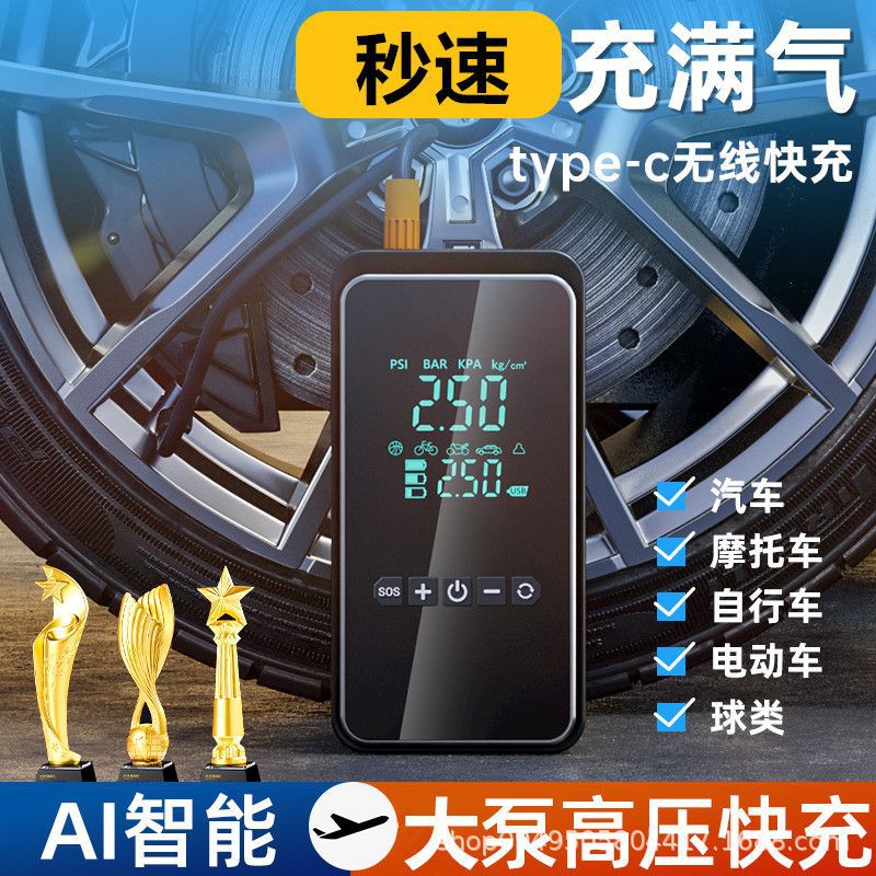新款车载充气泵迷你便携式打气筒手持无线充电数显多功能充气泵