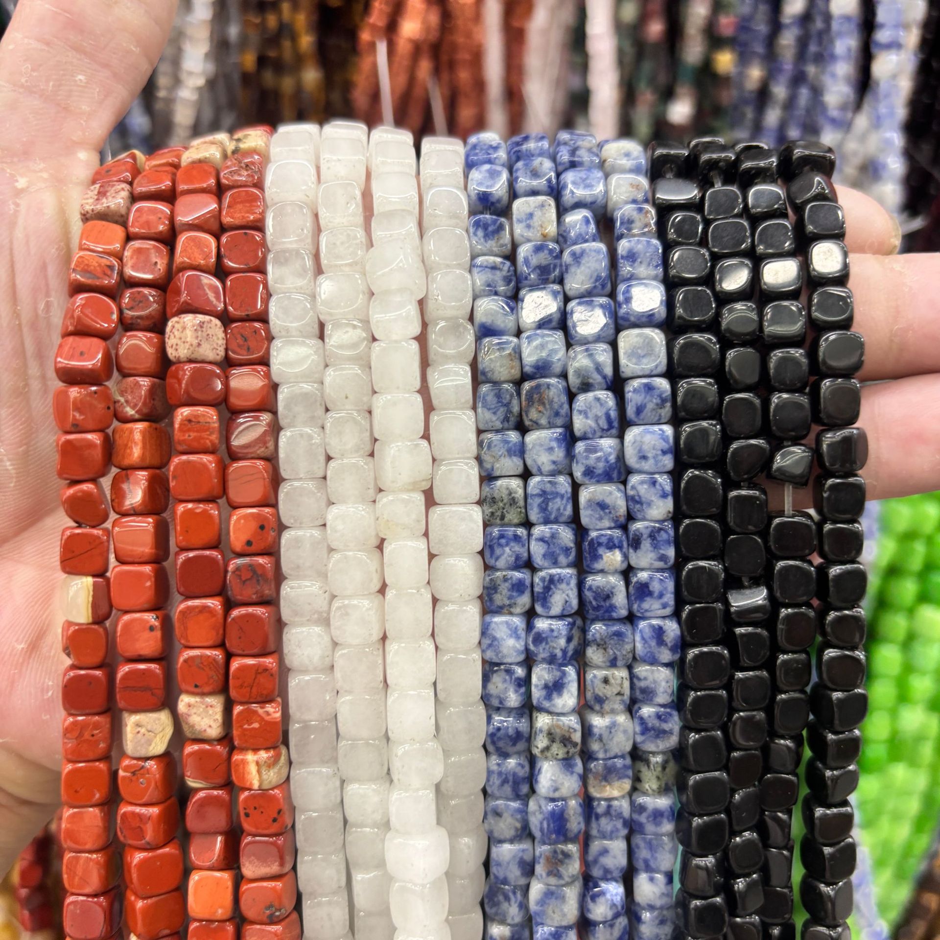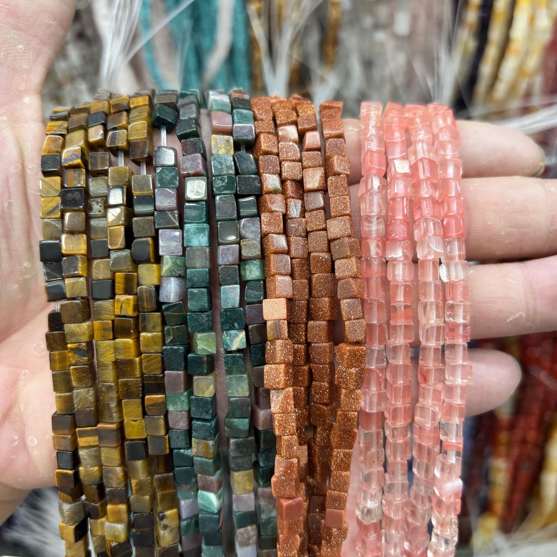 4 × 4 ミリメートル原石天然石直角正方形ルースビーズ DIY ブレスレットネックレスジュエリーアクセサリー半完成ビーズ卸売