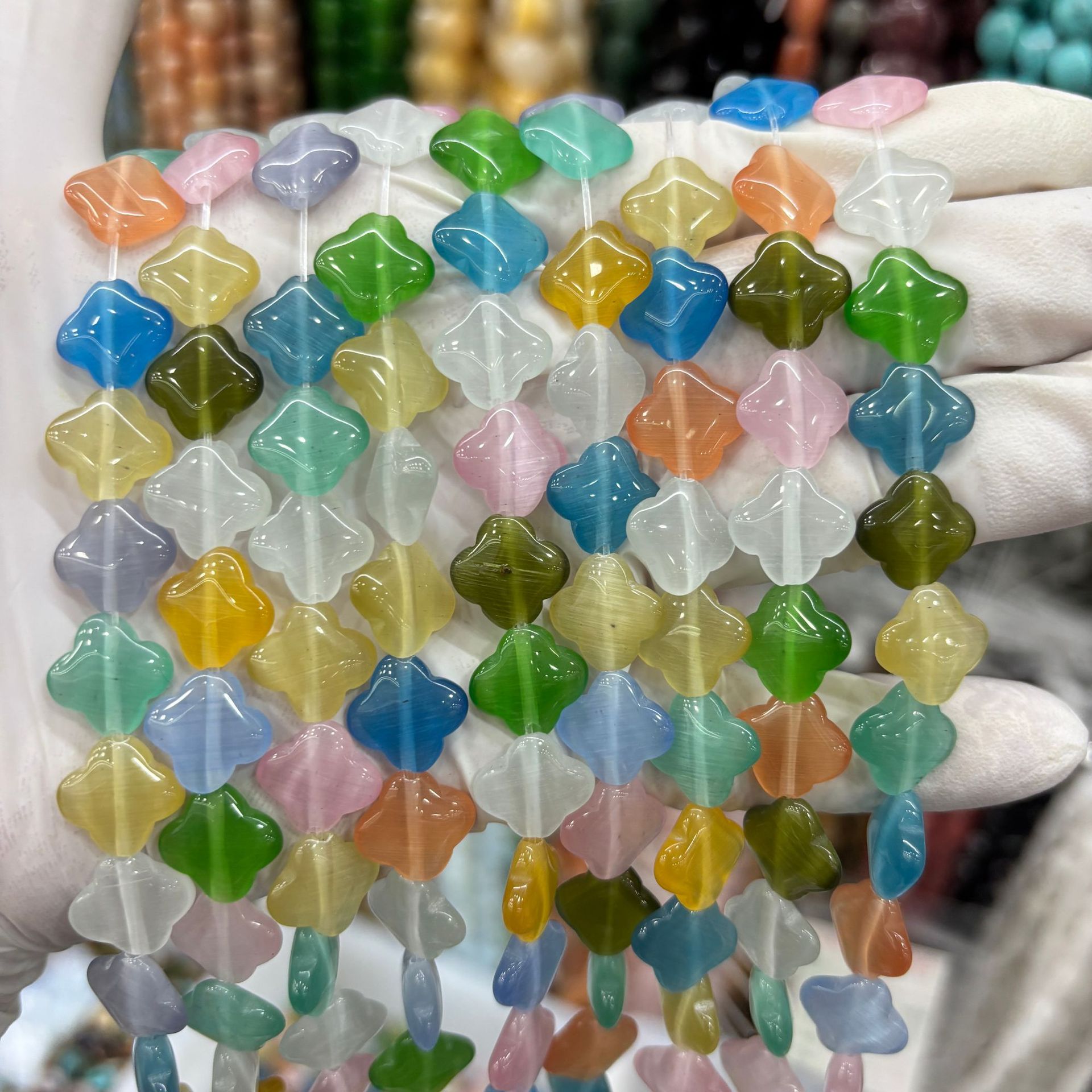 12 ミリメートルキャッツアイ光沢のある四つ葉のクローバールースビーズ DIY ブレスレットネックレスジュエリーアクセサリー半完成ビーズ卸売