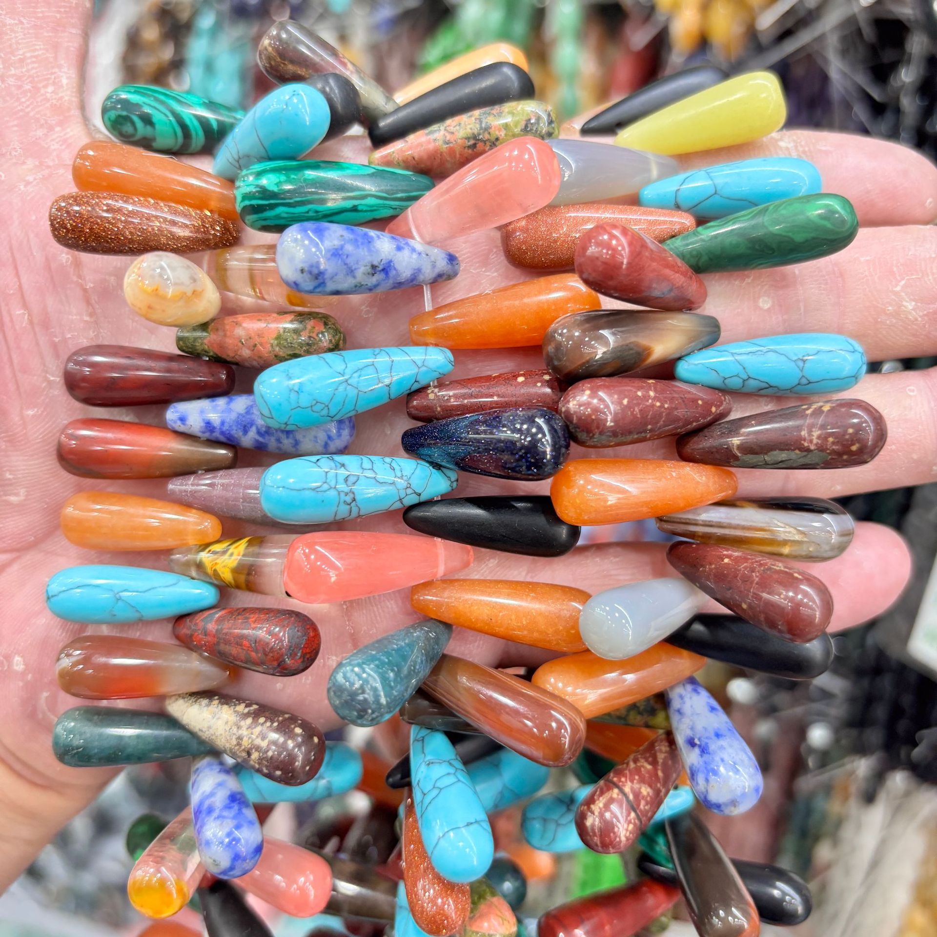 8 × 24 ミリメートル天然石水平穴水滴ラウンドビーズルースビーズ DIY ブレスレットネックレスジュエリーアクセサリー半完成ビーズバッチ