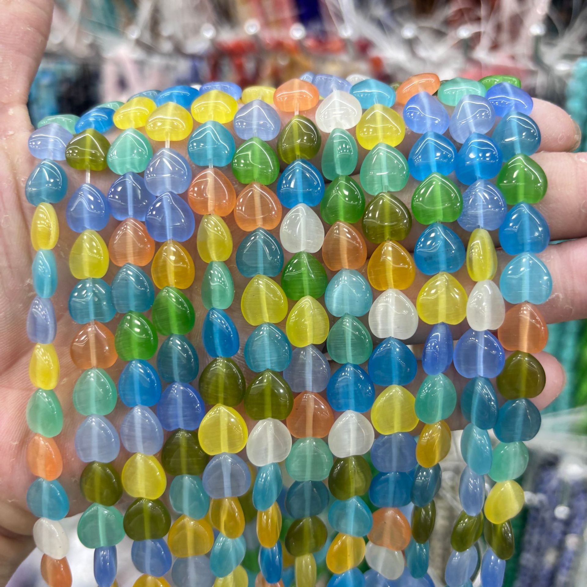 10 ミリメートルキャッツアイラブルースビーズハート型フラットビーズ DIY ブレスレットネックレスジュエリーアクセサリー半完成ビーズ卸売