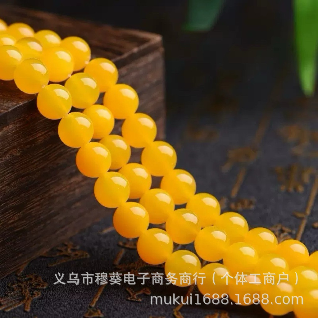 Mu Kui 天然黄色瑪瑙ルースビーズ DIY ブレスレットネックレスジュエリーアクセサリー半完成ビーズ卸売
