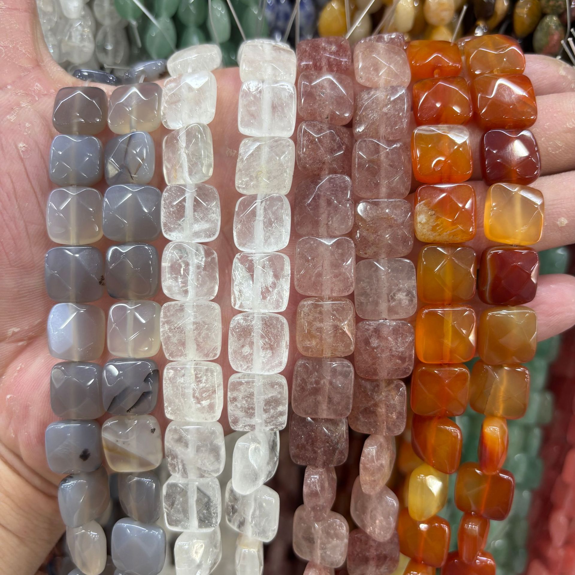 10 ミリメートル天然鉱物天然ファセットスクエアルースビーズ DIY ブレスレットネックレスジュエリーアクセサリー半完成ビーズ卸売