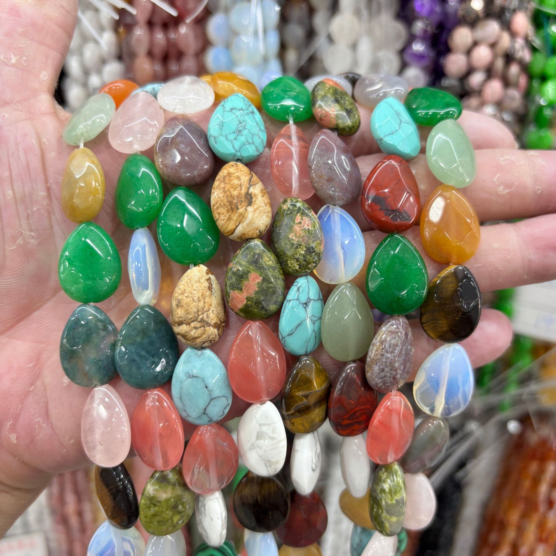 13 × 18 ミリメートル天然石ファセットウォータードロップフラットビーズ DIY ブレスレットネックレスジュエリーアクセサリー半完成ビーズ卸売