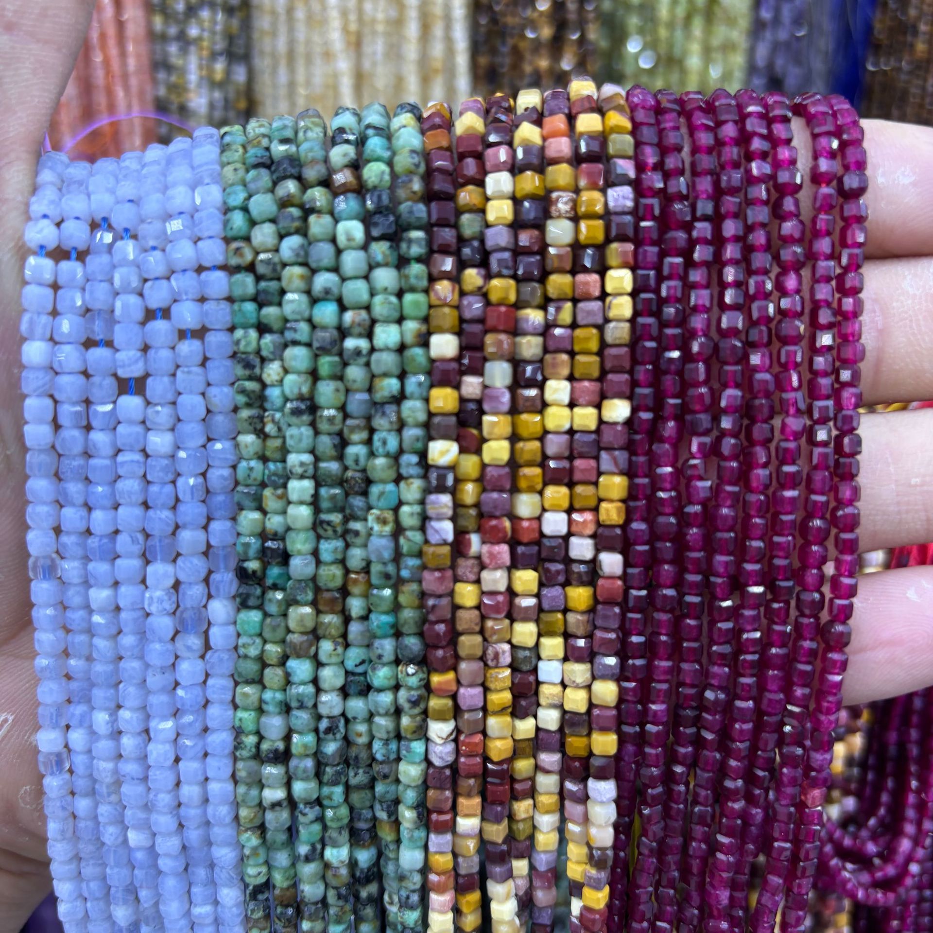3 ミリメートル原石天然石カット角砂糖ルースビーズ DIY ブレスレットネックレスジュエリーアクセサリー半完成ビーズ卸売