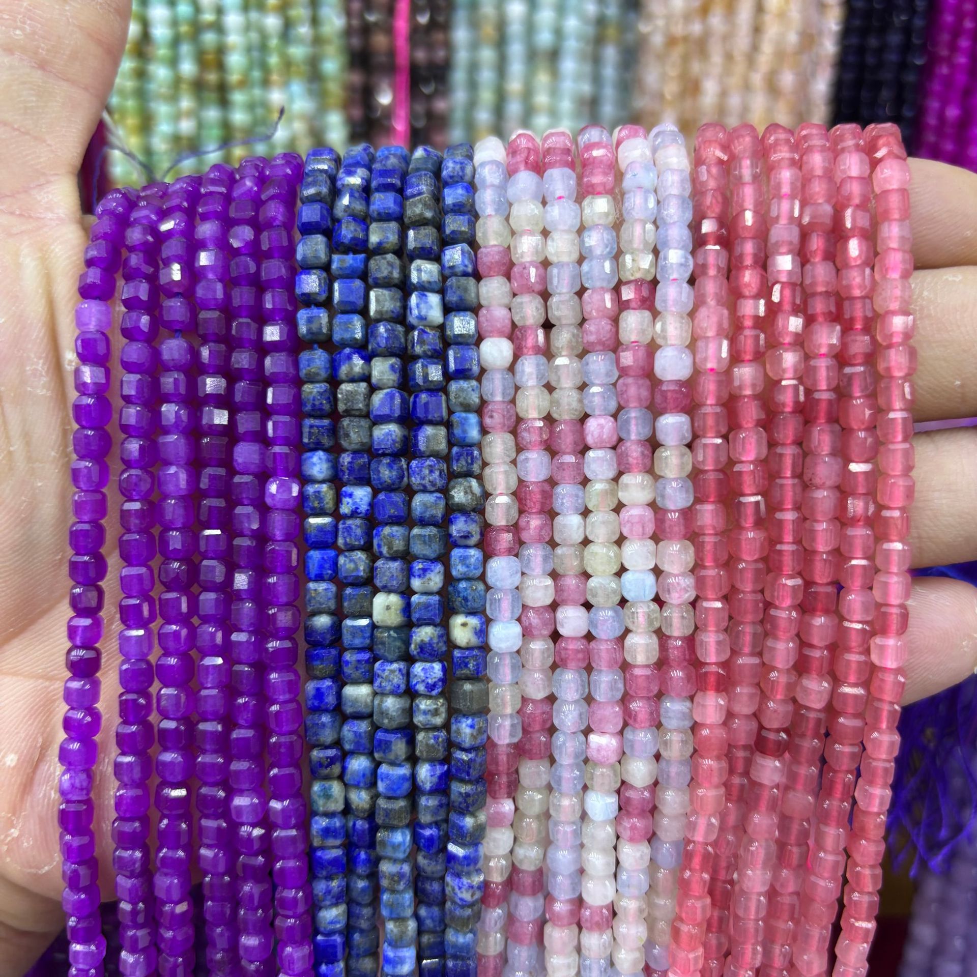 4 ミリメートル天然石カット角形シュガーキューブルースビーズ DIY ブレスレットネックレスジュエリーアクセサリー半完成ビーズ卸売
