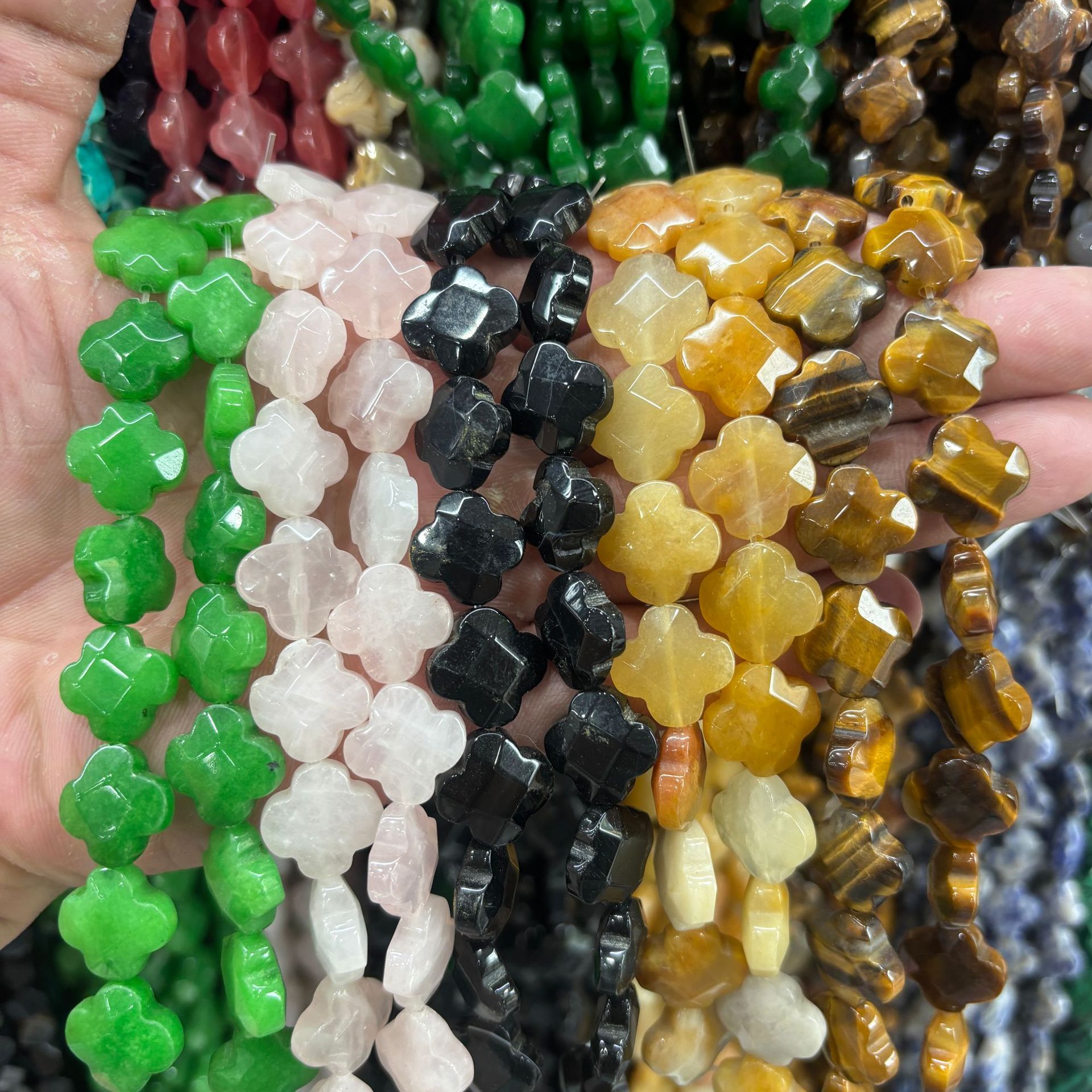 14 ミリメートル天然石ファセット四つ葉のクローバールースビーズ DIY ブレスレットネックレスジュエリーアクセサリー半完成ビーズ卸売