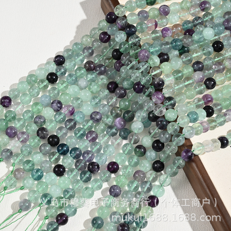 Mu Kui 原石天然色蛍石ラウンドビーズルースビーズ DIY ブレスレットネックレスジュエリーアクセサリー半完成ビーズ卸売