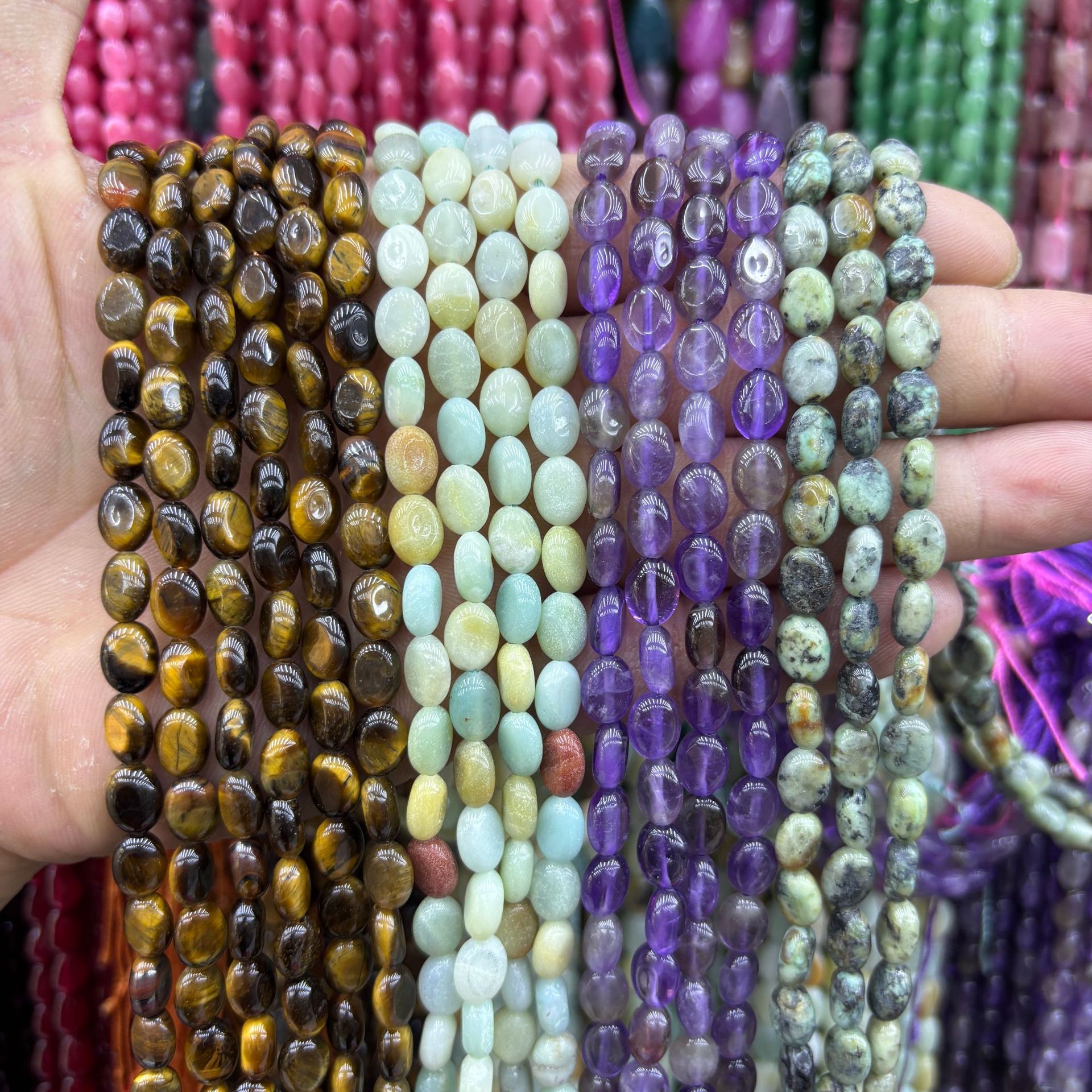 6x8天然石楕円ビーズ散珠シリーズDIYブレスレットネックレスアクセサリー半製品ビーズ卸売り