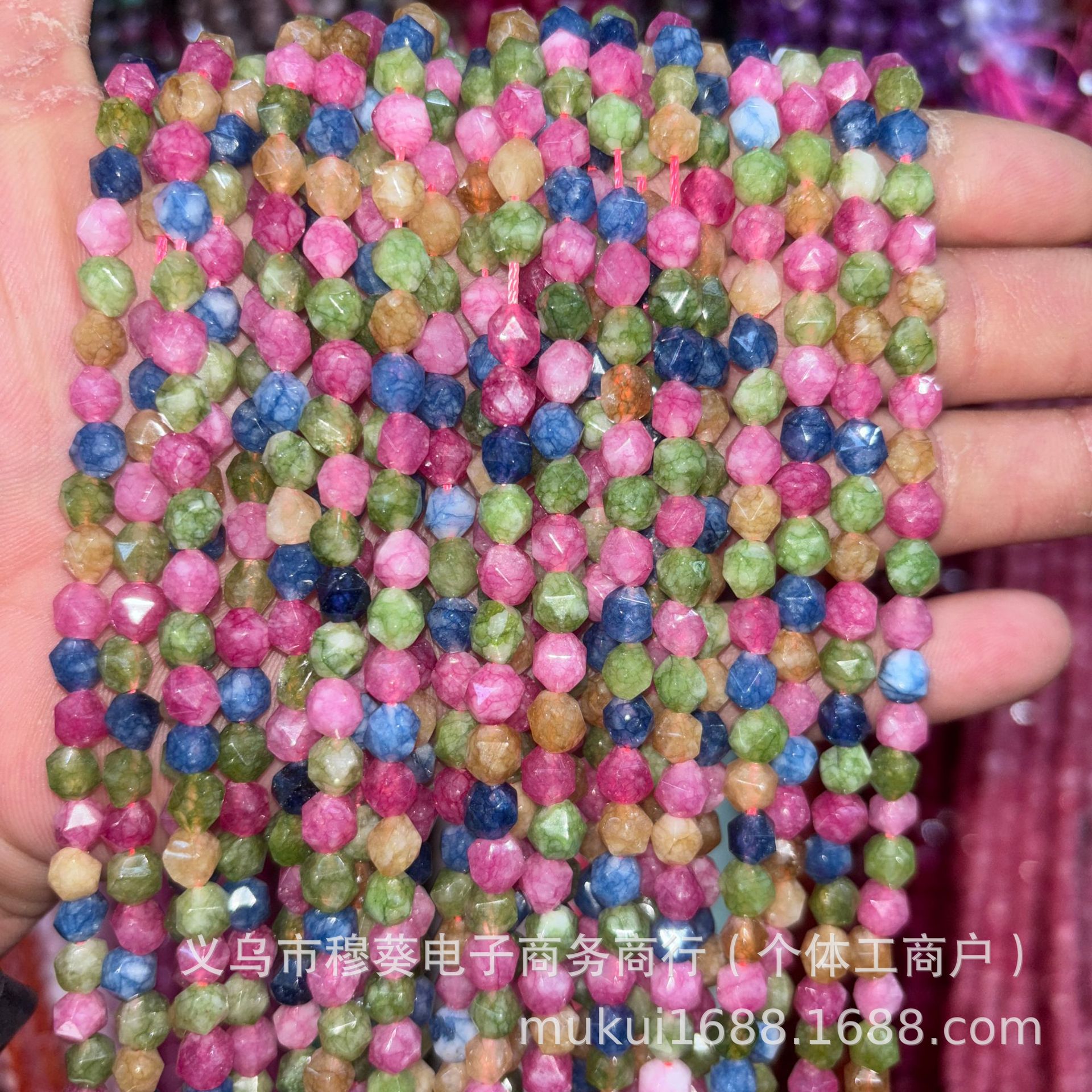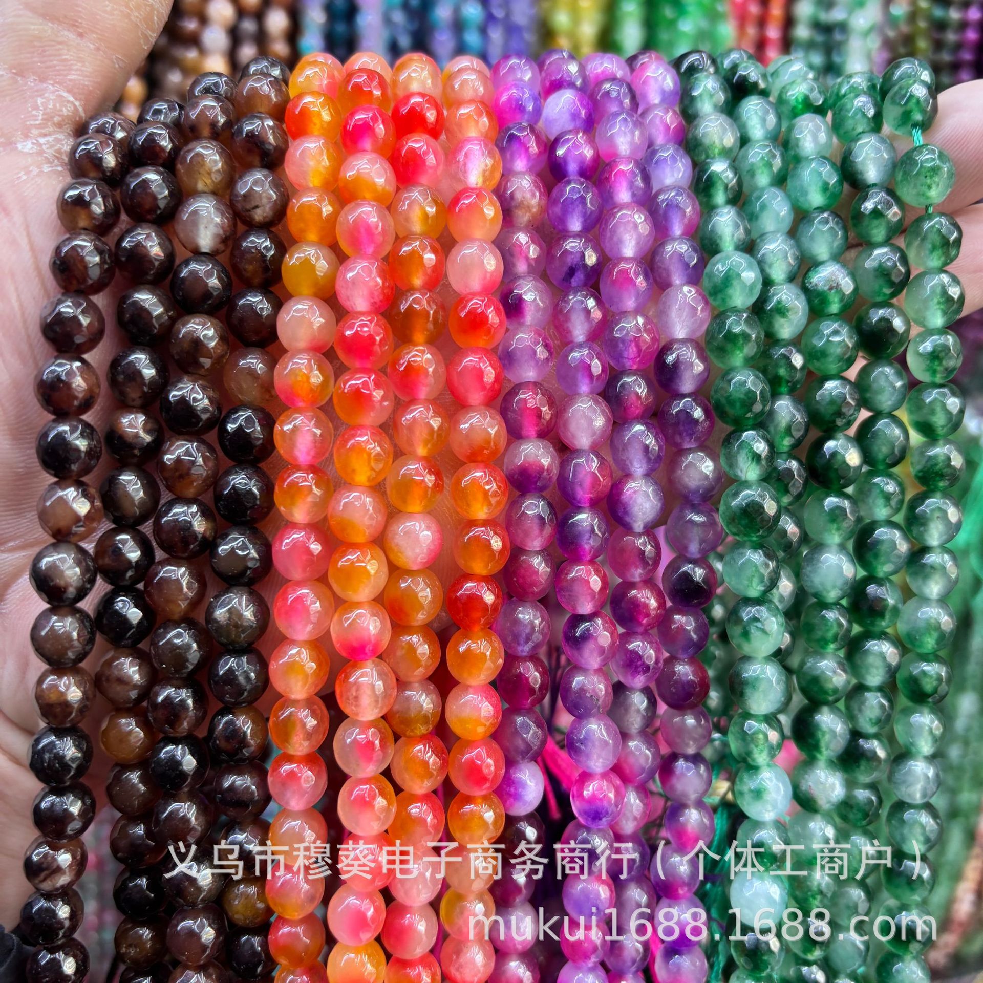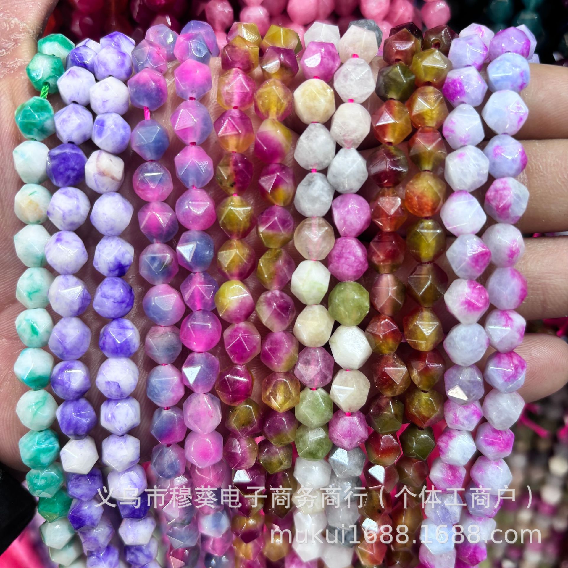 Mu Kui 8 ミリメートルナチュラルバイカラーフローティングフラワーカルセドニーダイヤモンドファセット DIY ブレスレットネックレスアクセサリージュエリービーズ卸売