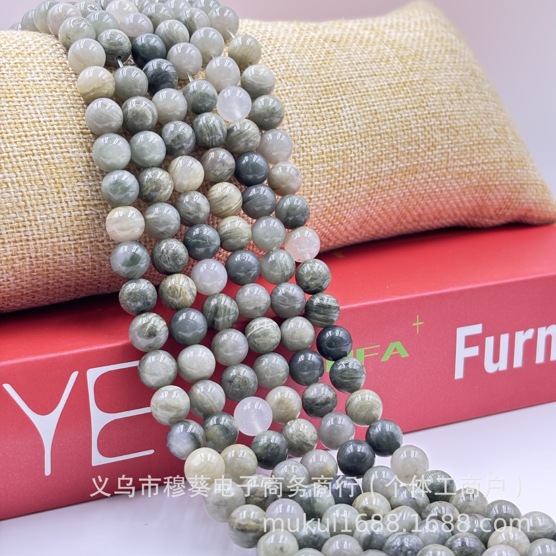 穆葵天然緑草石散珠青草石DIYブレスレットネックレス部品ビーズ半製品卸売り