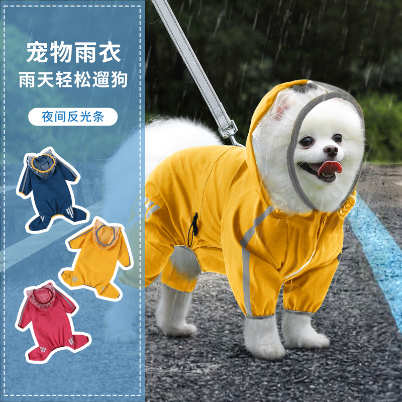 越境新型牽引犬四足レインコート防水大中小小型犬ペット雨の日の外出服