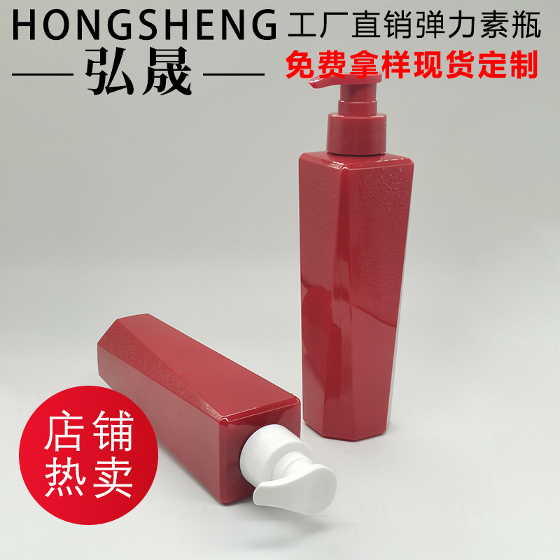 スポット300ml赤色ジェルクリーム弾力素瓶乳液押え瓶多角形シャンプーボトル入浴露瓶