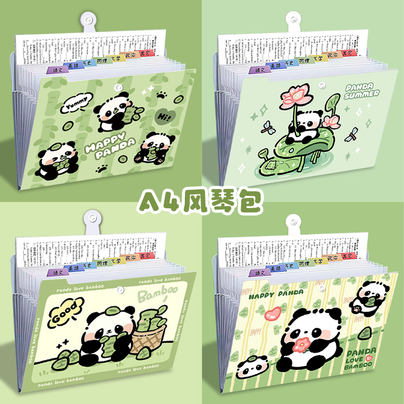パンダのファイルの横版のオルガンの包みはページの透明な答案用紙を挿してa4の書類を収めて学生の分類を挟んでかわいいです。