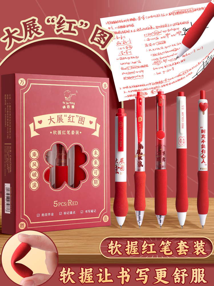 赤筆セット学生専用先生押し式添削作業赤中性筆ST筆頭高颜値速乾
