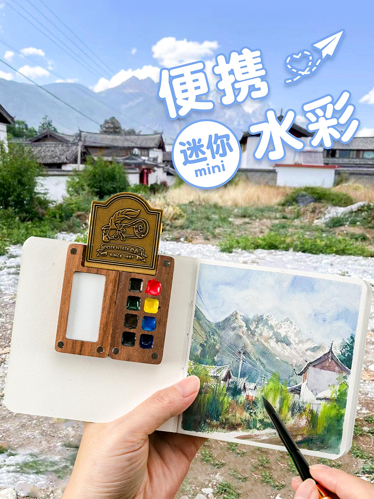 ミニポータブル水彩絵の具セット固体分注ホルバイン美术専用フルセットツールパレット水