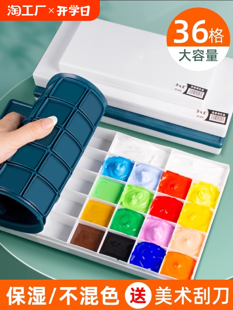 水彩絵の具トナーケース蓋付き24格36格ソフトキャップ絵の具ケース美術生専用水粉アクリル絵画ケース