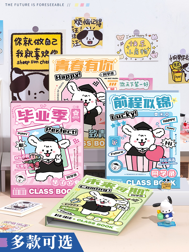 かわいい子犬のクラスメートは小学生の6年生の女子学生の高颜値のバインダー本の卒業記念帳のアドレス帳を記録します。
