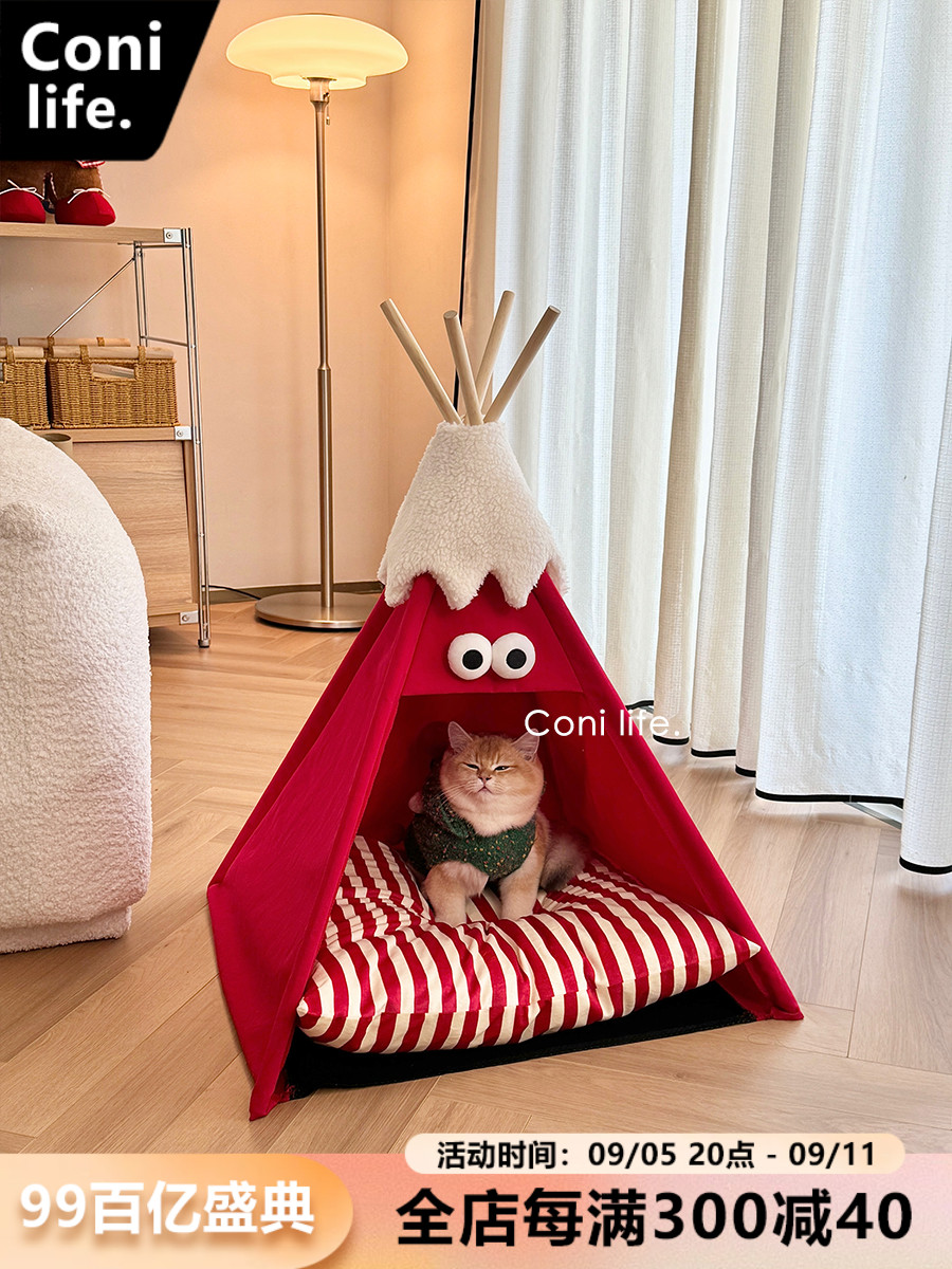 Coni life猫巣猫テント雰囲気感四季通用冬祝日お祝い赤保温猫屋