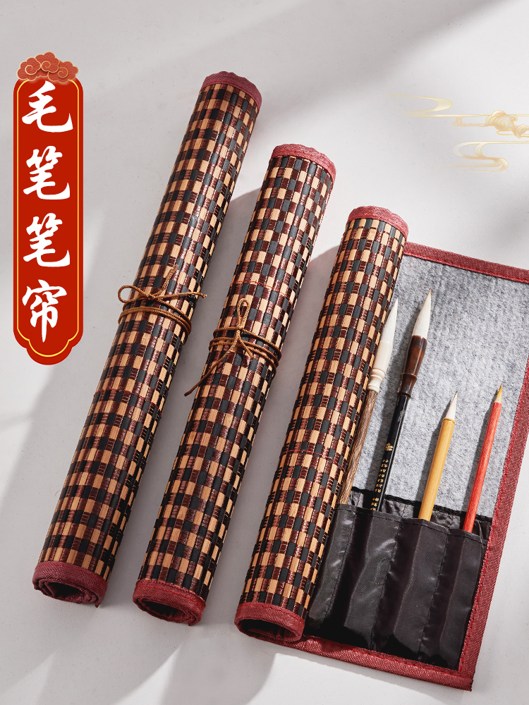 ベルベット竹ペンカーテン携帯大容量収納ペン袋保護毛筆フェルトレトロ小学生専用縁