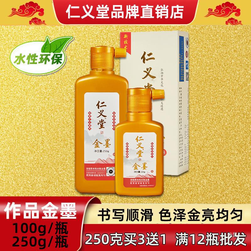 仁義堂作品金墨水性環境保護無異臭高濃度金粉墨汁書道対聯書画通用