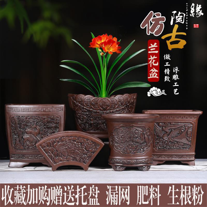 宜興紫砂模造古大サイズ君子蘭専用通気鉢植え床ベランダ緑植花卉中国風植木鉢