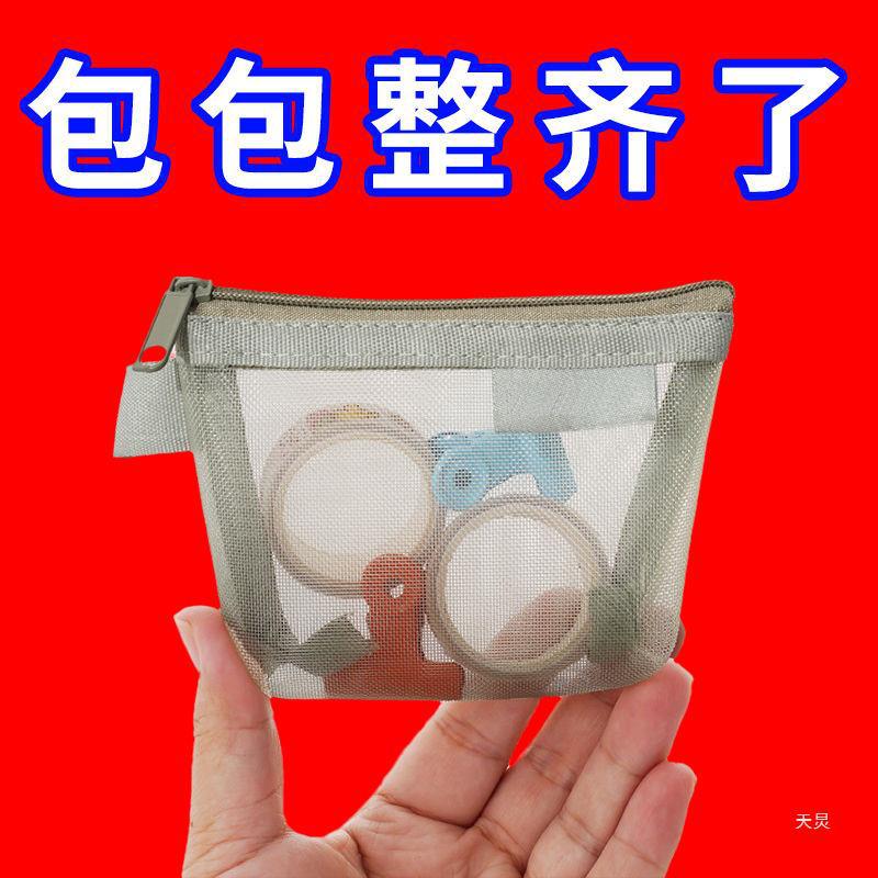 学生ミニグリッド収納バッグナイロン立体ネット小銭入れキーホルダー口紅携帯収納透明袋