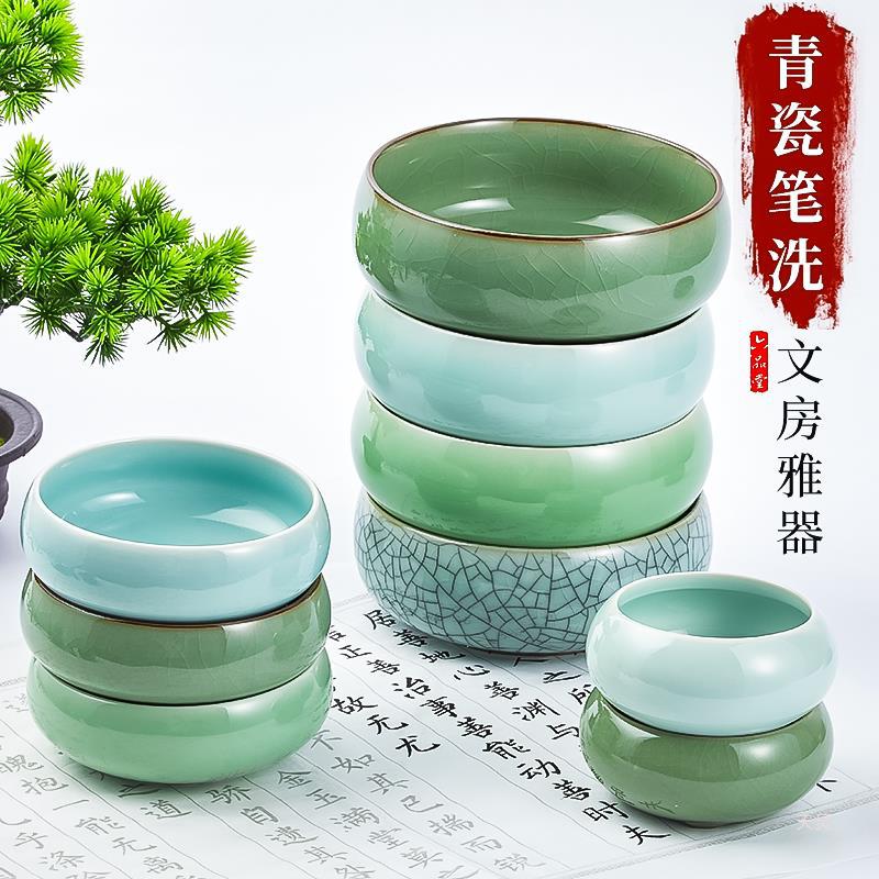 六品堂青磁の筆洗大サイズの筆洗三点セットの筆洗筒文房四宝毛筆書道国画用品陶