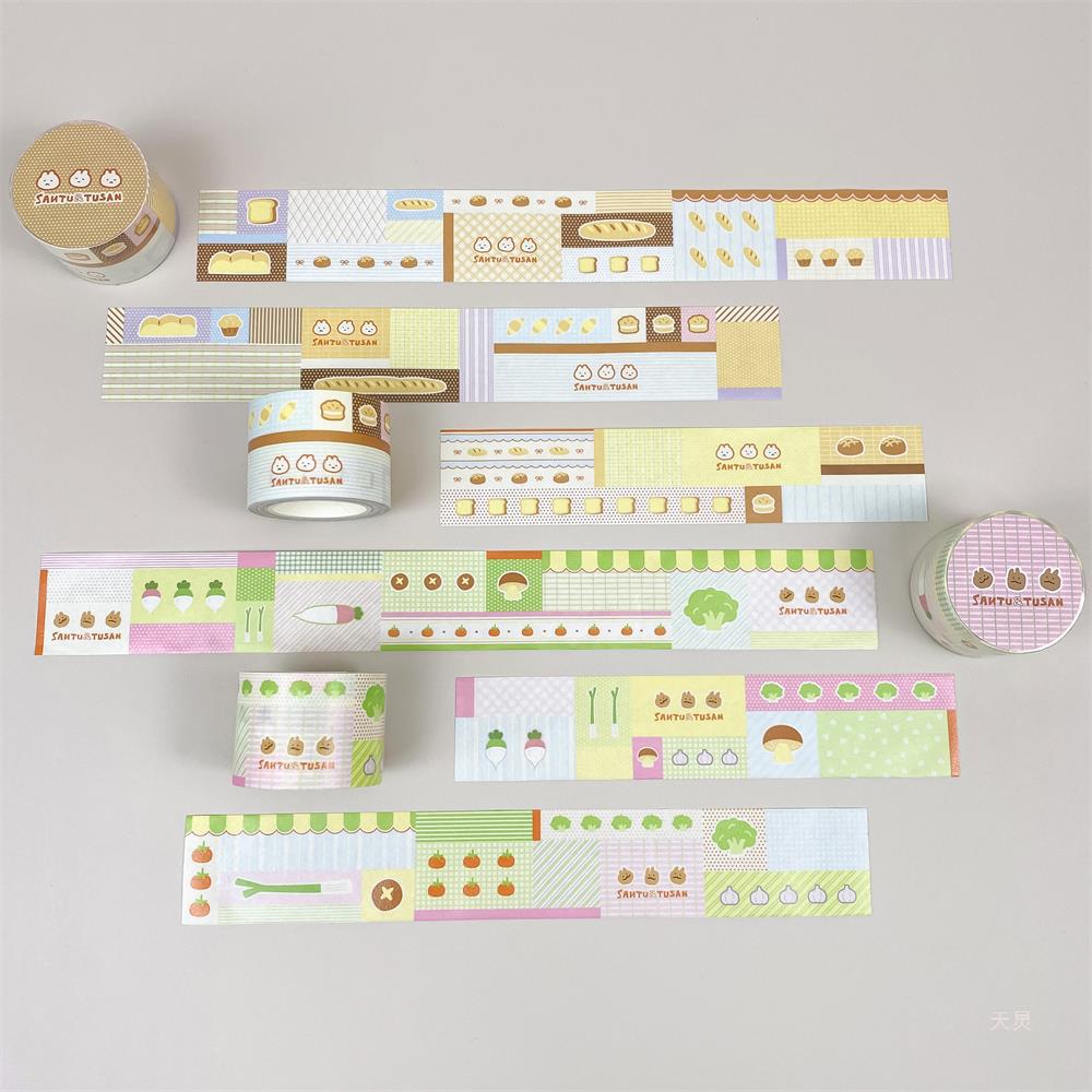 さんうさぎうさぎさん【甘口パン屋野菜コンビニ】オリジナル手帐テープ和纸手帳シール文字