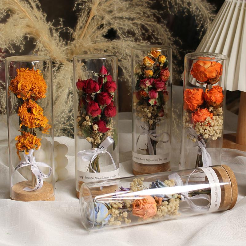 願い事の瓶の乾いた花の真の花のバラのガラスのカバーの置物の永遠の花の装飾の祝日の贈り物の発光の創意のお土産
