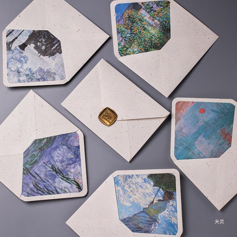 レトロモネ油絵麻布質感封筒レターセットカード封筒カバーベージュ火漆封筒内