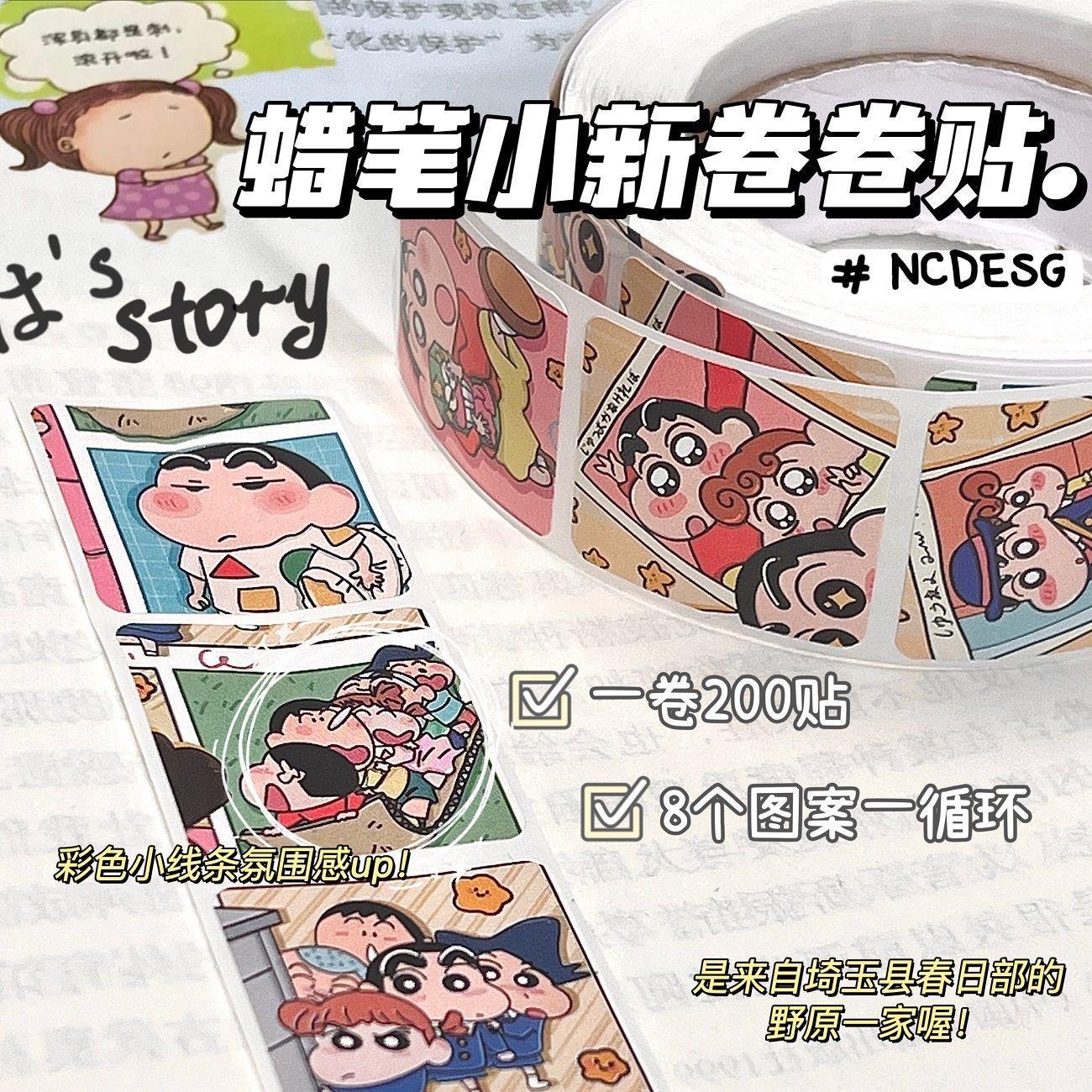 彩色絵クレヨンしんちゃんシール全巻アイデアins装飾手帳貼りカードシール巻巻貼り200枚