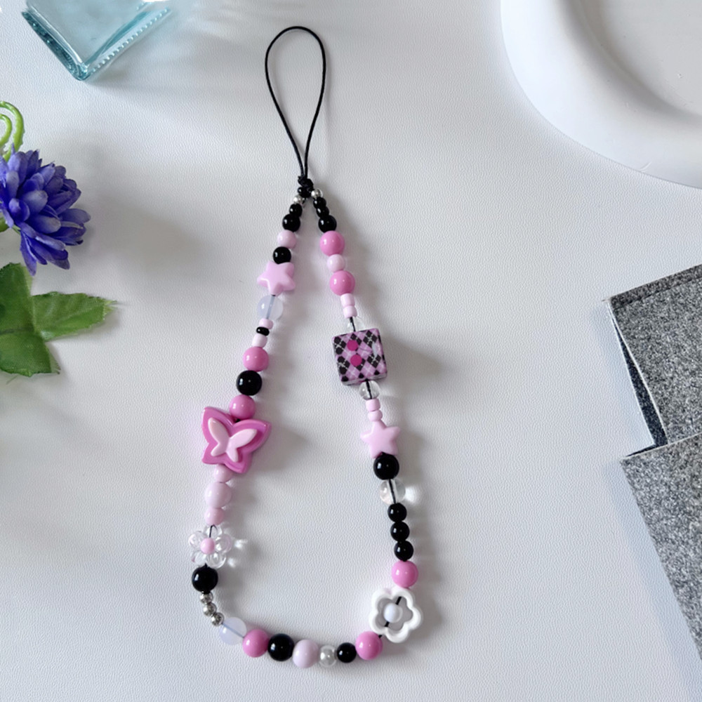 y2k 甘いクールな風蝶花 ccd カメラハンドロープ diy ビーズスター携帯電話チェーンストラップ携帯電話ケースペンダント