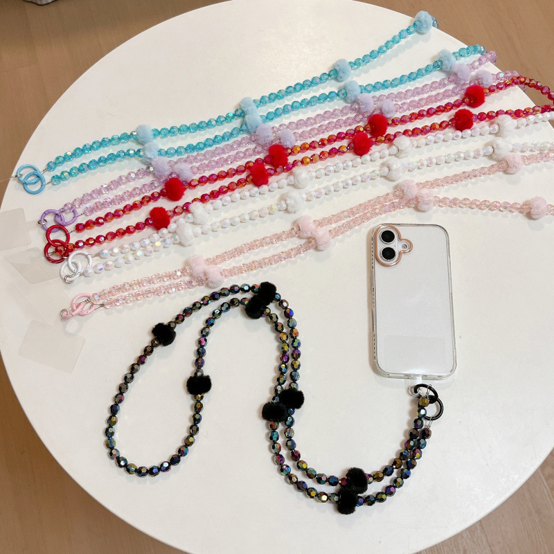 新年オリジナル秋冬ファーボールビーズ携帯電話チェーンロングクロスボディチェーンハイエンドクリスタルビーズペンダントアクセサリー