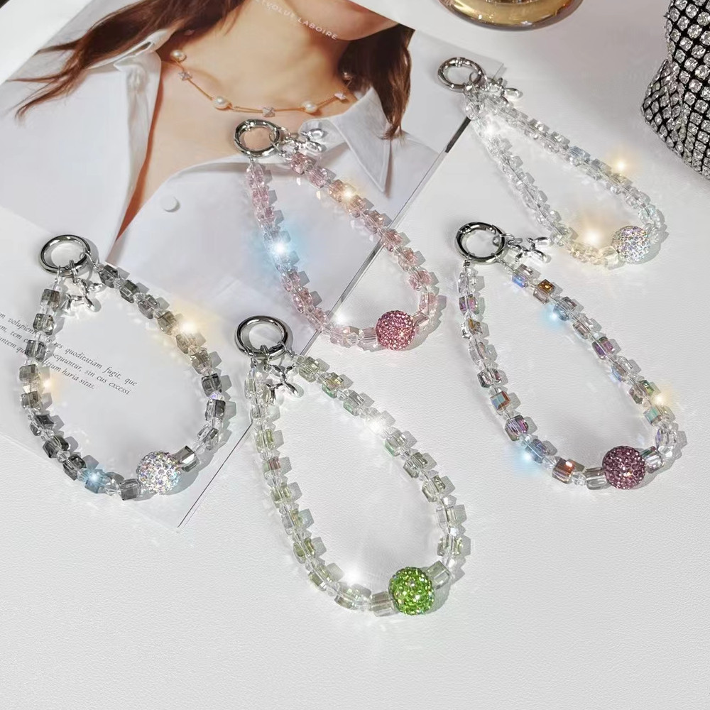 スクエアハイエンドカラフルなクリスタルブレスレット吊りチェーン携帯電話ストラップショートポータブルリストペンダントクリップペンダントユニバーサル