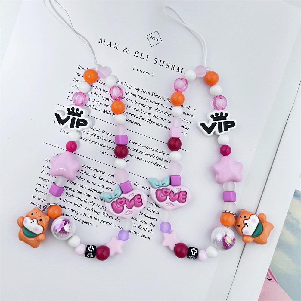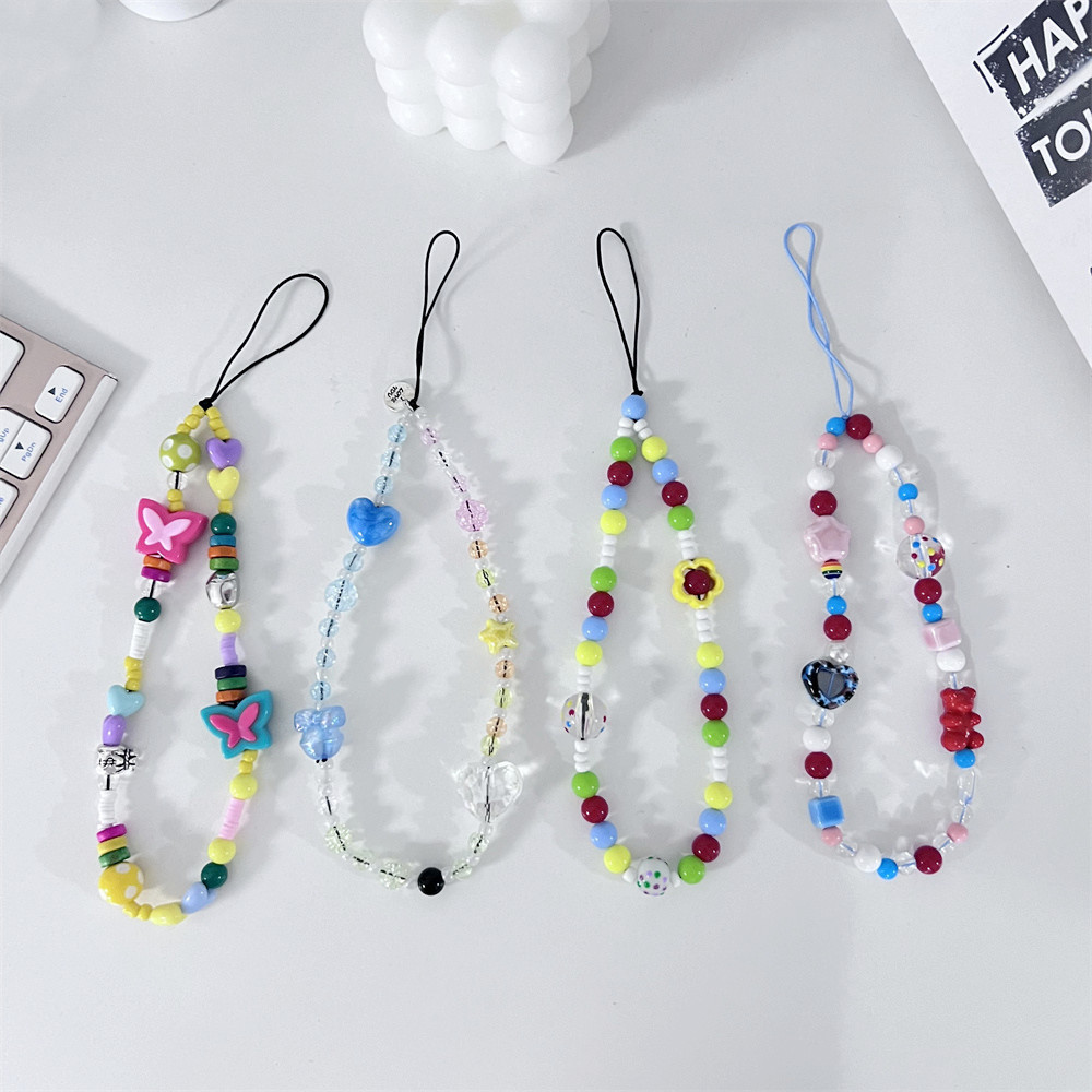 トレンディな韓国スタイルの高価値ドーパミンカラービーズリボン携帯電話チェーン携帯電話ストラップペンダント女の子用
