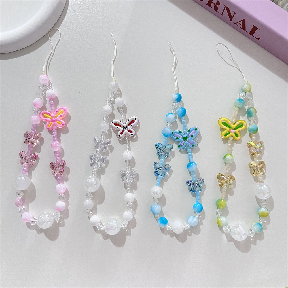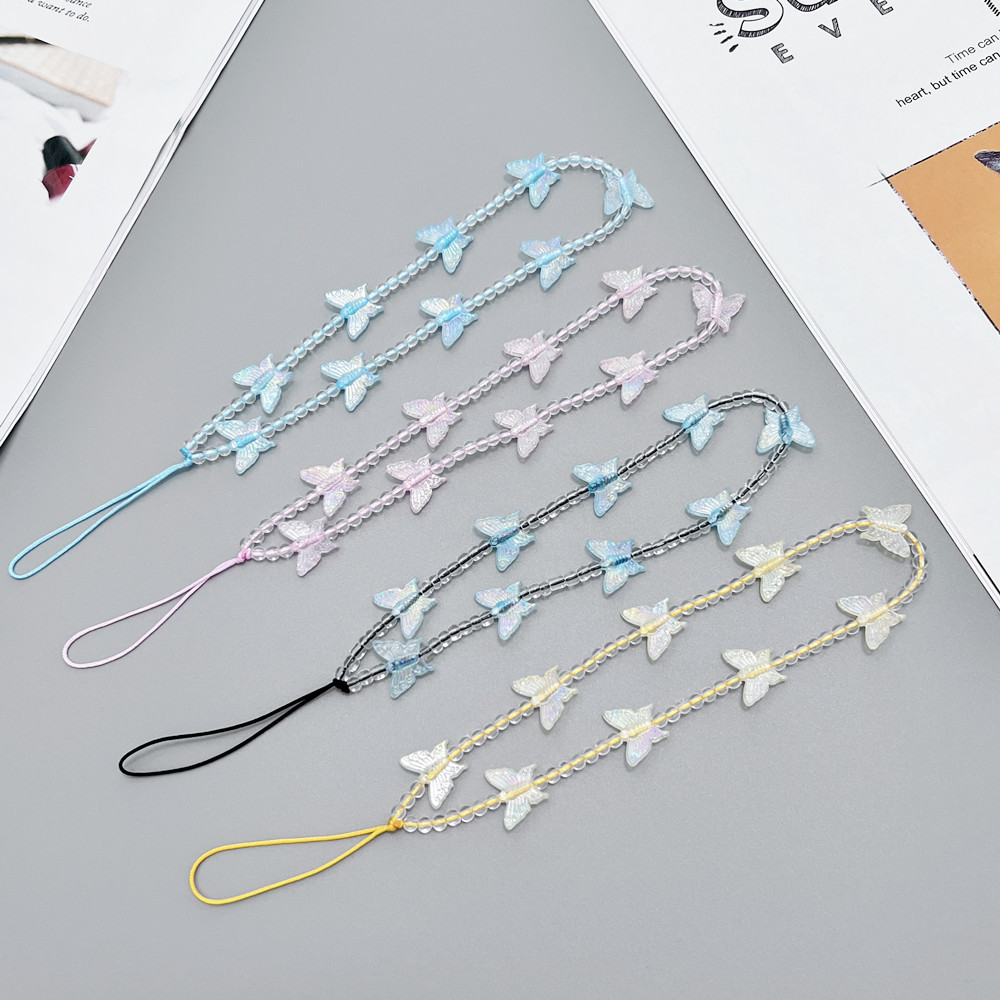 新しいファッション蝶ビーズチェーンショート耐久性のある携帯電話ストラップ女性の高級小さな新鮮なアクセサリー女性のバッグの装飾