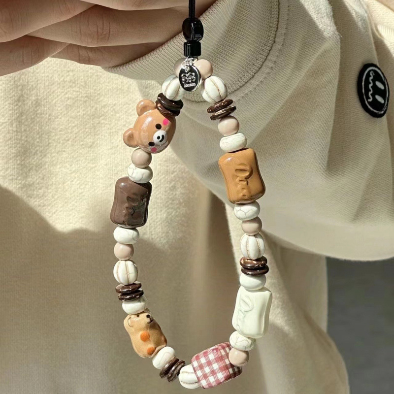 オリジナルクマホットココアオリジナルビーズ携帯電話ストラップ落下防止手首タイプ ccd カメラストラップポラロイド