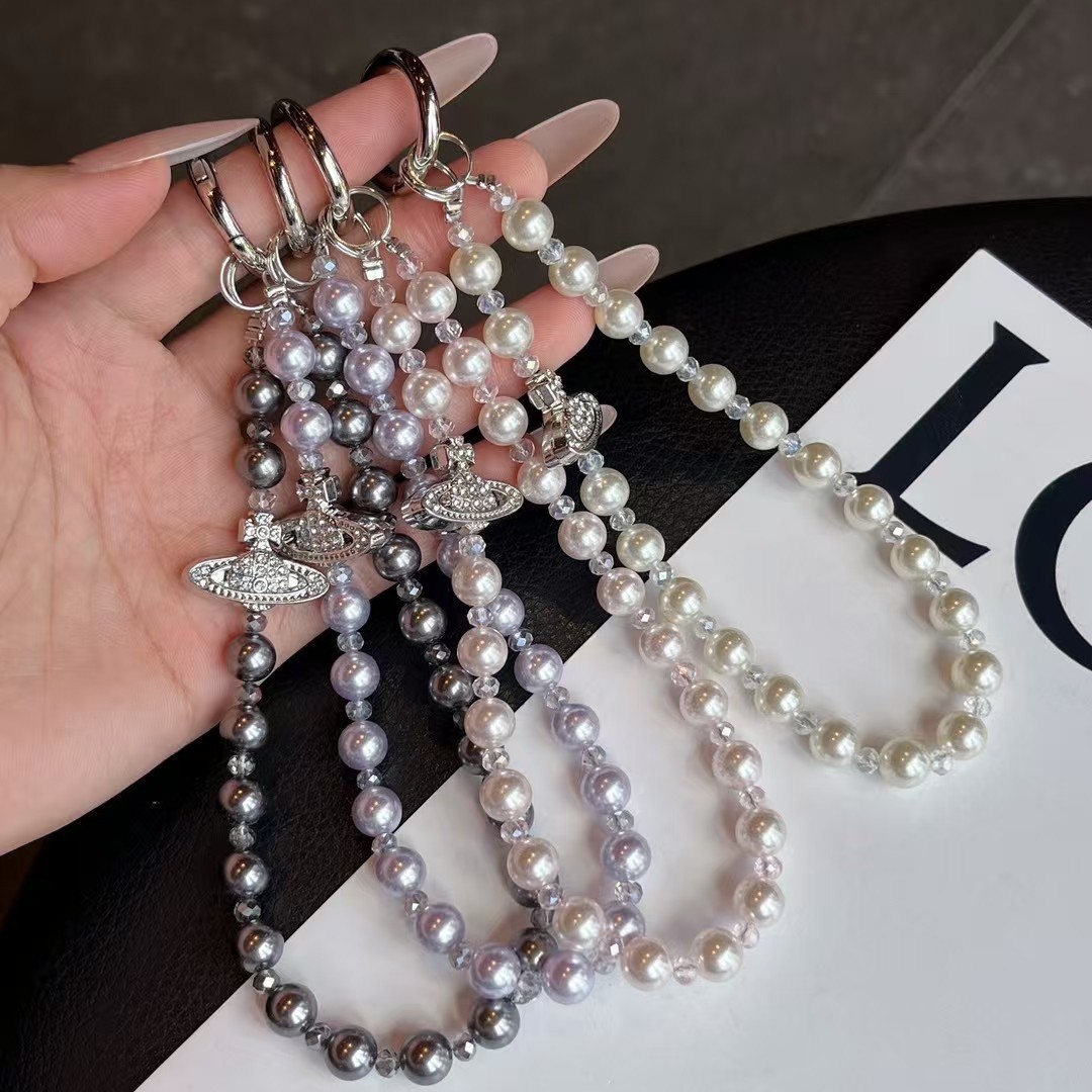 ファッション土星チェーン水晶携帯電話チェーン手作りビーズ真珠の短いバッグストラップ卸売り対外貿易