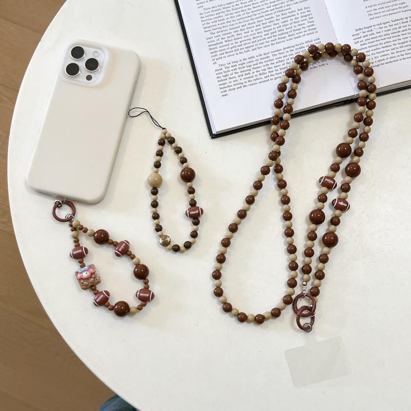 レトロな携帯電話チェーン、手作りビーズブラウンハイエンドチェーンペンダント、クロスボディチェーンクリップ、ポラロイドチェーン