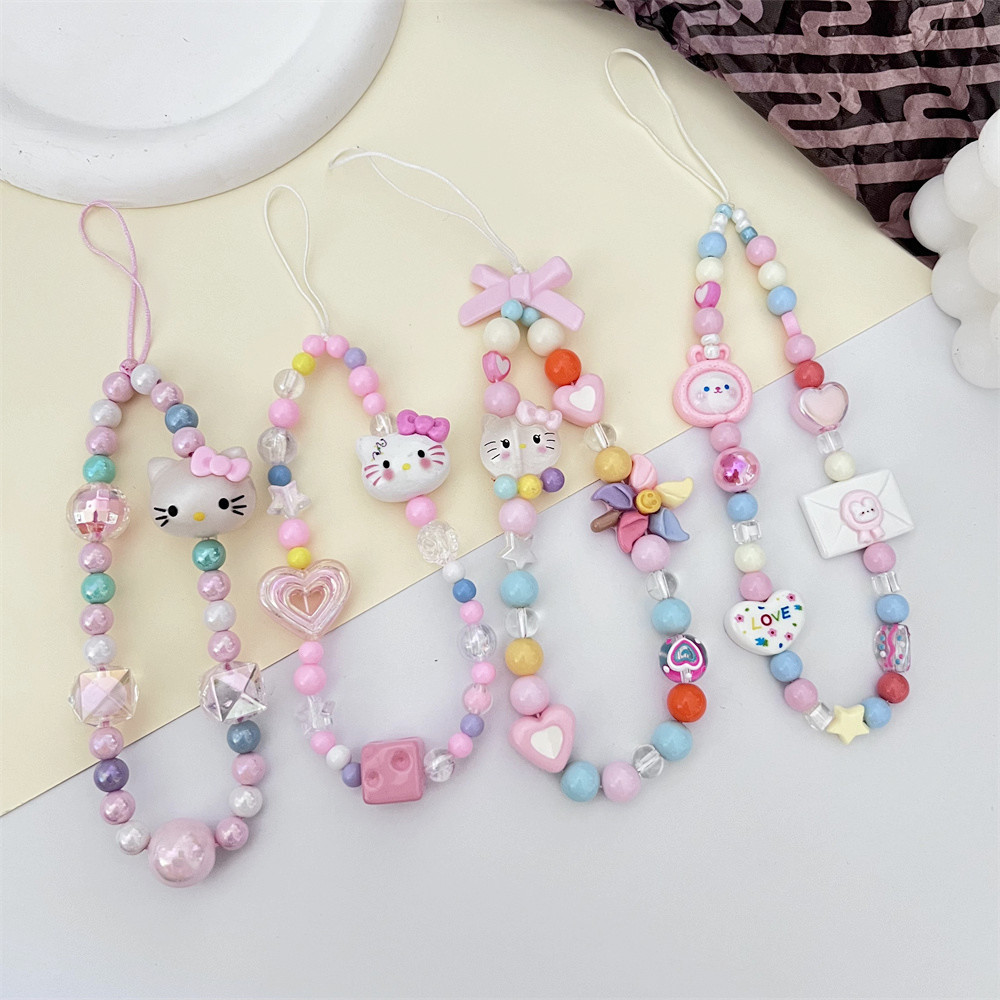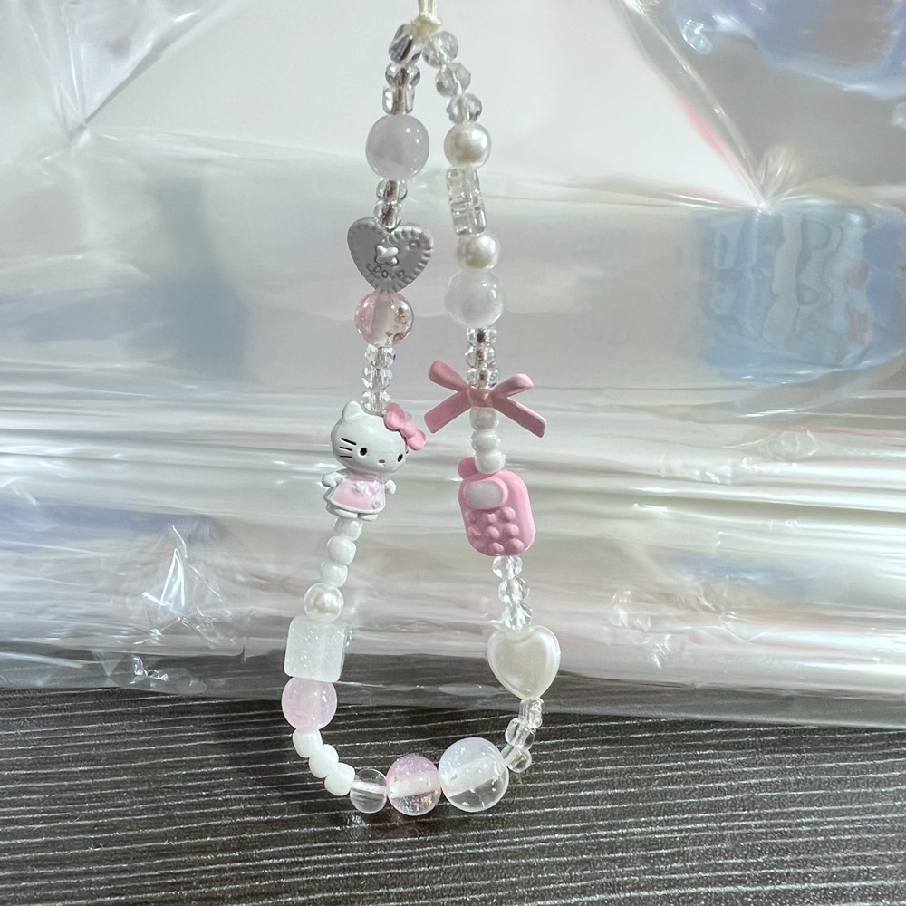 漫画ビーズ kt 猫ピンク携帯電話チェーン ccd カメラぶら下げチェーン diy ガールハートチーズスクエアビーズ紛失防止ロープ