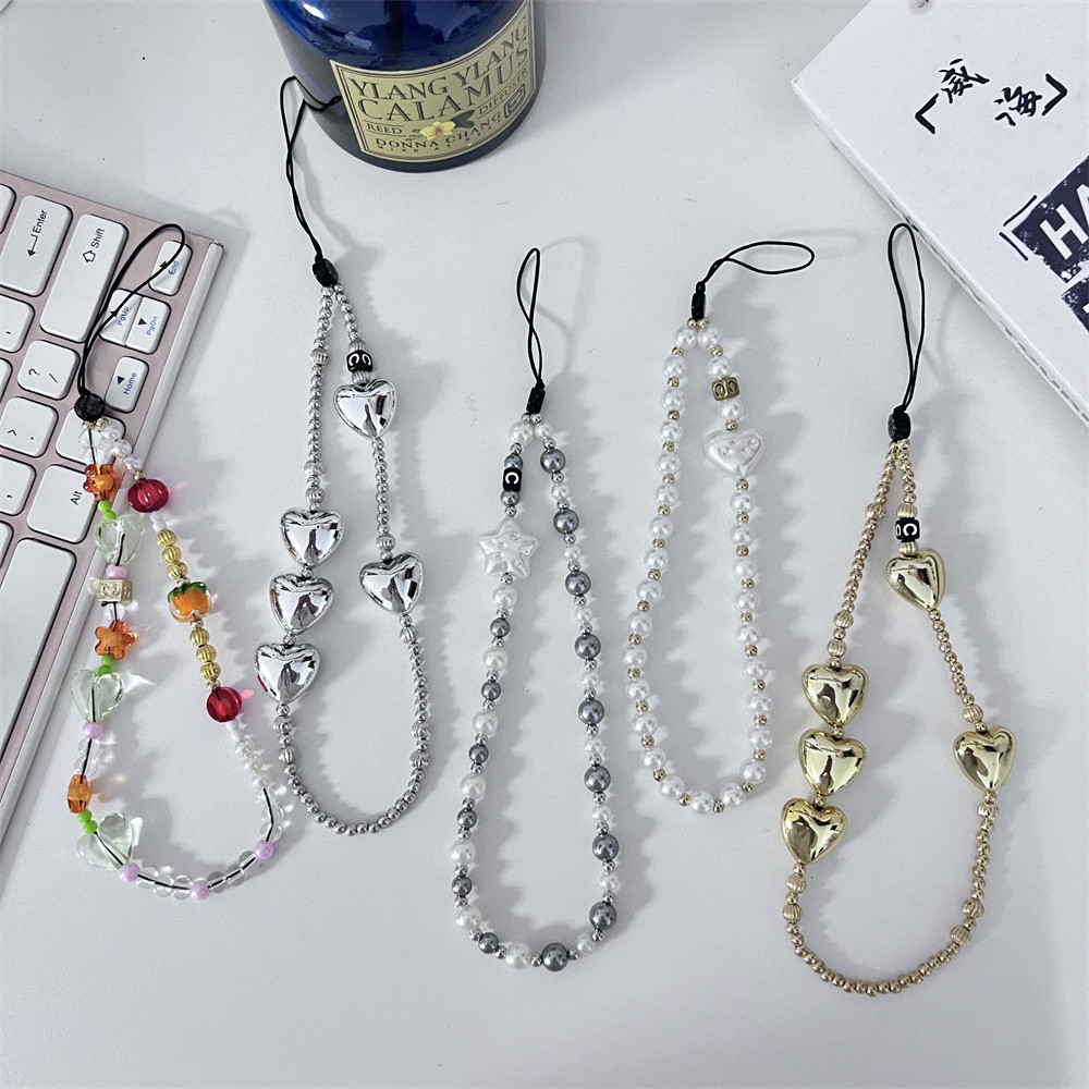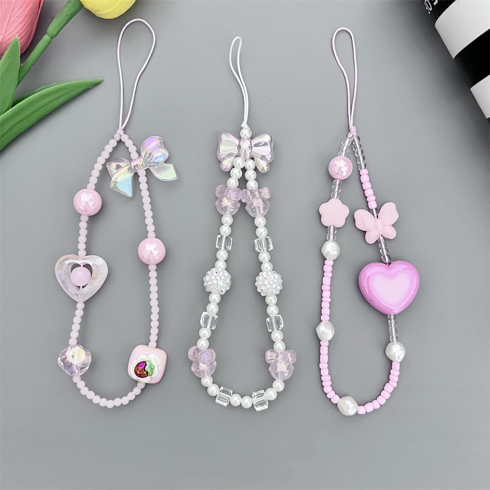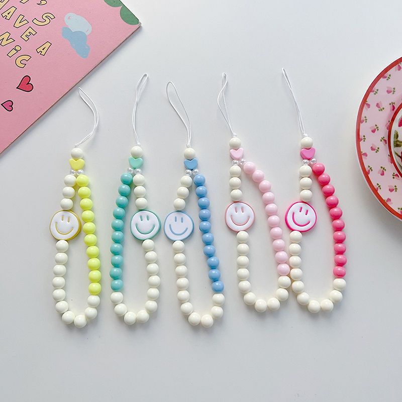 スマイリーキャンディーカラーブロック携帯電話ストラップ手作りビーズチェーンバッグキーコントラストカラービーズユニバーサルペンダントガーリーハート