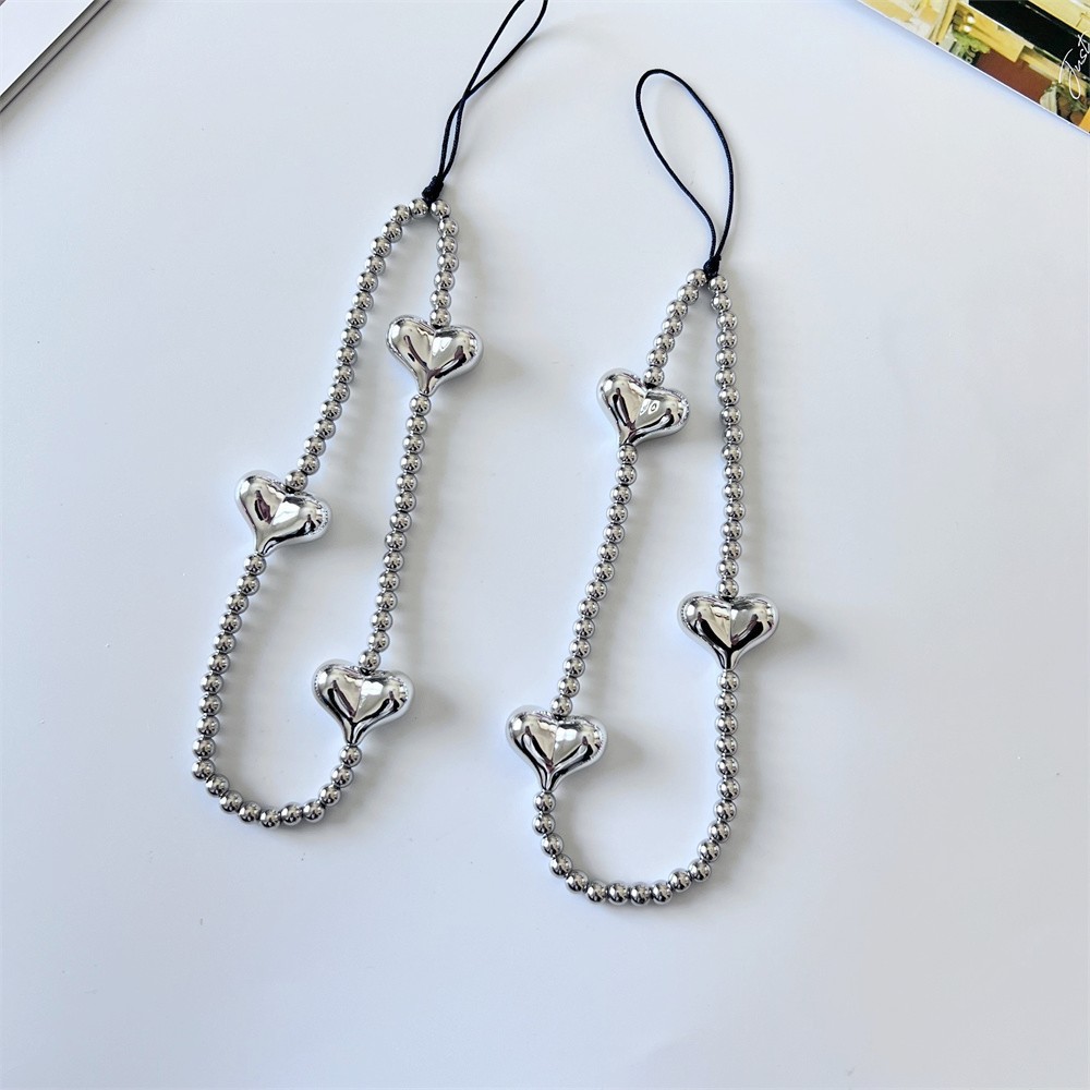 ins ラブビーズ携帯電話チェーン黒と白のデジタルペンダントニッチ ins ビーズギフトストラップラブに適しています